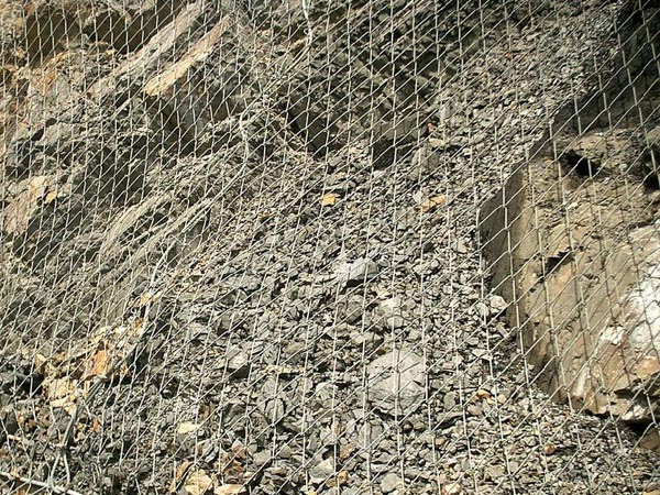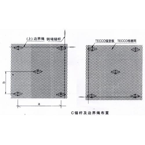 TECCO鋼絲格柵網又名鈦克網/GTC-65A鋼絲格柵網它的工作原理主要是通過預應力鋼筋(錨桿)或鋼絲繩錨桿(有邊沿支撐繩時采用)、專用錨墊板以及必要時的邊沿支撐繩等固定方式,將柔性網覆蓋在有潛在地質災害的坡面上。